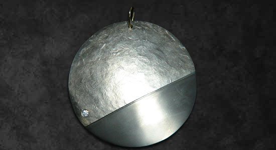 Ciondolo di grandi dimensioni ma estremamente leggero realizzato completamente a mano, tagliando la sua forma da una lastra in Titanio