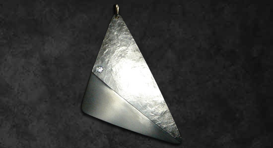 Questo ciondolo di grandi dimensioni ma estremamente leggero è realizzato completamente a mano, tagliando la sua forma da una lastra in Titanio