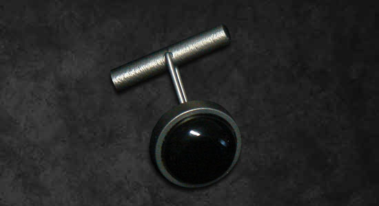 Gemelli realizzati a mano in Titanio satinato e colore naturale con incassata una semisfera in corno di bufalo nero. La chiusura di facile utilizzo è a barilotto basculante.